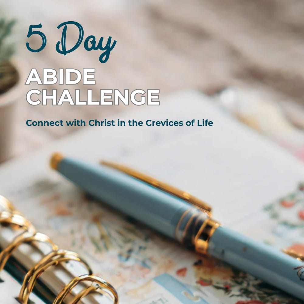If you would like to learn how to spend time with God by abiding in him daily, take the 5 Day Abide challenge. It will give you 5 days of different Abide ideas to help you get started. Or if you’ve completed the challenge and want more ideas, consider picking up a copy of my book Abide: 40 Ways to Focus on Jesus Daily. All 40 likely will not work for you in every season, but hopefully, you’ll find a few to get started or to add to those you’re already doing.